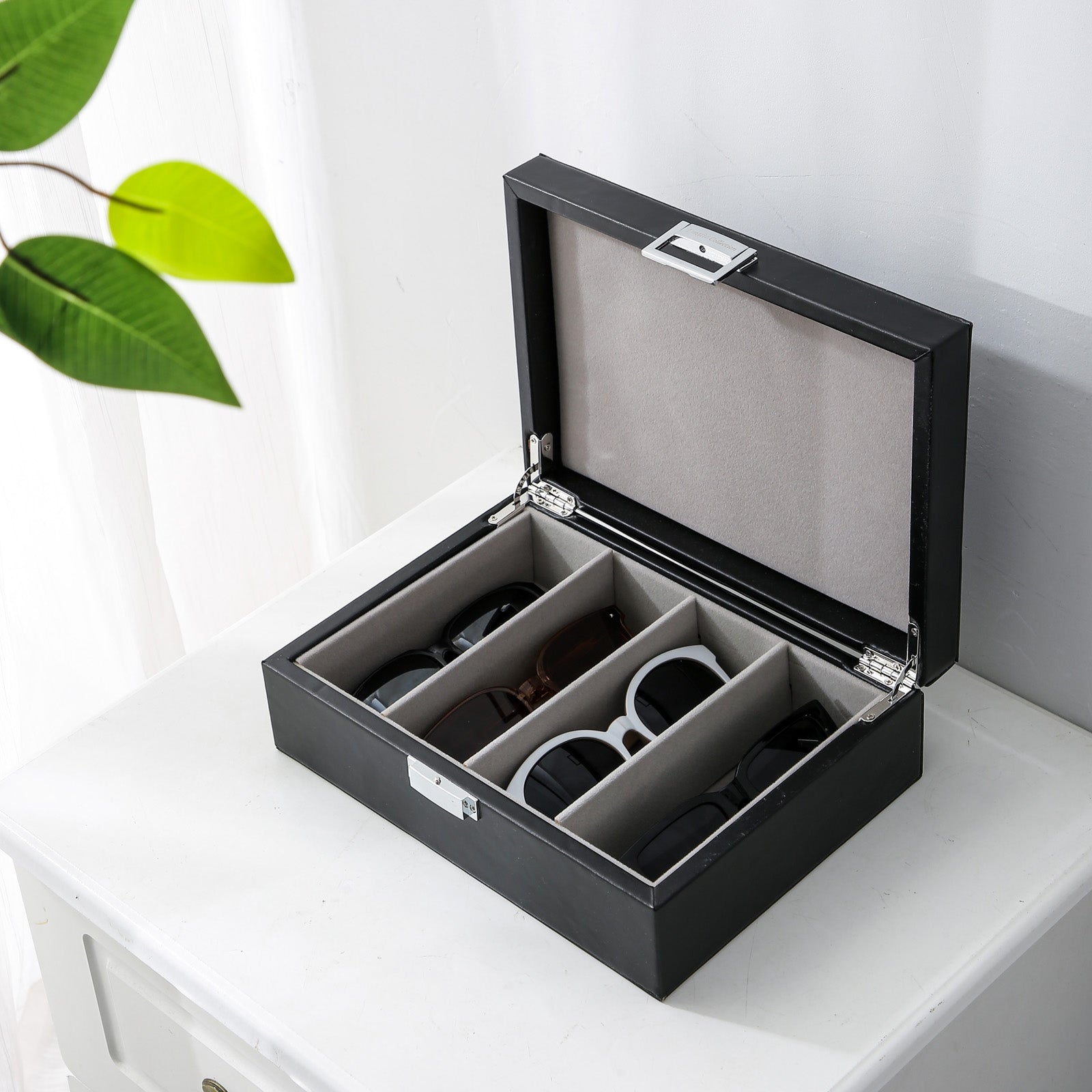 Opbergbox van Emilie collection voor het overzichtelijk opbergen van 4 brillen en zonnebrillen. In de opbergbox kun je overzichtelijk en veilig je brillen en of zonnebrillen opbergen.