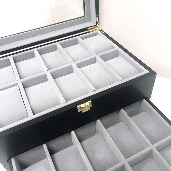 Horlogedoos 20 vakken zwart goud luxe